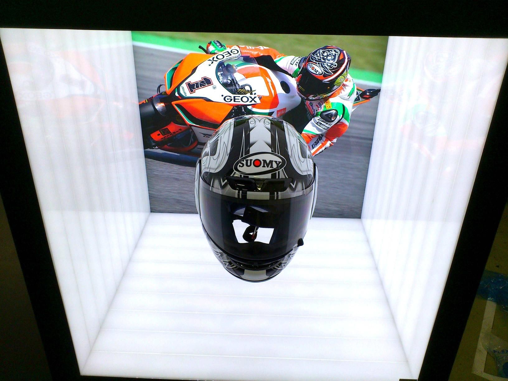 Vorführvitrine von vorne, einseitig verglast, Beleuchtung an 4 Innenseiten und hinten. Diese Art von Schaufenster bietet die höchste technologische Effizienz, die meisten Objekte können in diesen Typ platziert werden. Unter bestimmten Voraussetzungen ist auch ein Austausch des Produktes durch unsere Kunden mit dieser Art von Vitrine möglich.